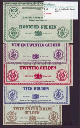 De Nederlandse Schoolcheque en girodienst. 2 1/2, 10, 20, 25 and 100 Gulden.
