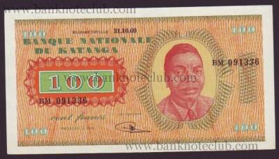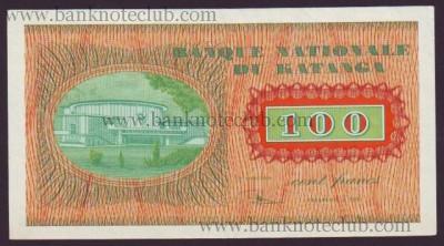 Katanga 100 francs 1960 Pick 8a in AU/UNC