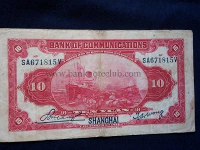 old 10 yuan banknote , very rare note , issed in shangahi