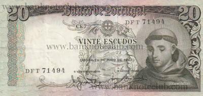 Banco de Portugal Bank note 20 Escudos 1964